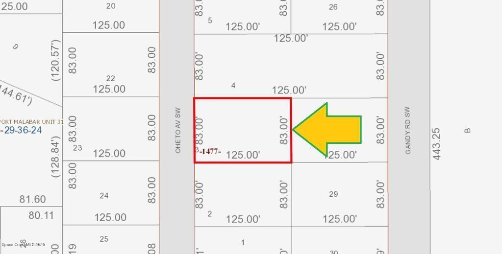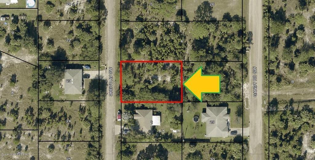 0.23 acre buildable single family residential lot [SRE Zoning for a 1800 sq.ft. minimum home] available in Port Malabar Unit #31 of Palm Bay. Located in the southwest section, this lot has City Water available, and is just 1.2 miles - 4 minutes to Westside Elementary School, 3.1 miles - 8 minutes to the Publix Supermarket, 14.7 miles - 31 minutes to Melbourne Airport, and 1.5 miles - 37 minutes to the beaches of Indialantic. From exit #176 of I-95 go west on Palm Bay Road NE for .7 miles, left on Minton Road for 3.3 miles, right on Jupiter Boulevard for .1 mile, left on DeGroodt Road SW for 3.3 miles, right on Osmosis Drive for .5 miles, right on Dexter Avenue for .2 miles, Dexter turns left and becomes Octavius Road for 379 feet, right on Oheto Avenue. The lot will be on your right.