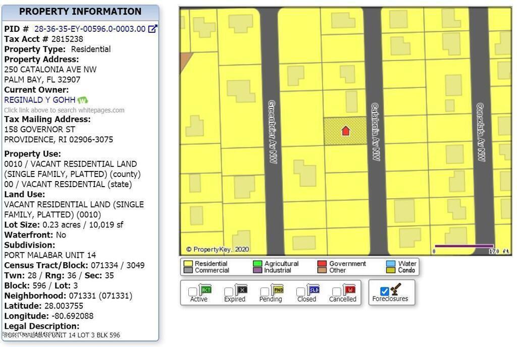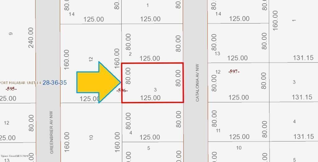 0.23 acre buildable single family residential lot [Rs2 Zoning} available in Port Malabar Unit #14 of Palm Bay. Located in the northwest section near the new Parkway, this lot is just 1.6 miles - 4 minutes to the Winn Dixie Supermarket, 1.8 miles - 5 minutes to McAuliffe Elementary School, 10.4 miles - 23 minutes to Melbourne Airport, and 13.2 miles - 28 minutes to the beaches of Indialantic. From exit #176 of I-95 go west on Palm Bay Road NE for .7 miles, left on Minton Road for 1.7 miles, right on Americana Boulevard NW for 1.6 miles, and left on Catalonia Avenue. The lot will be on your right.