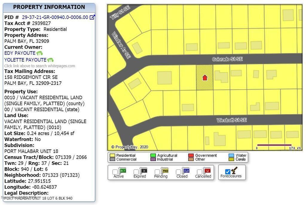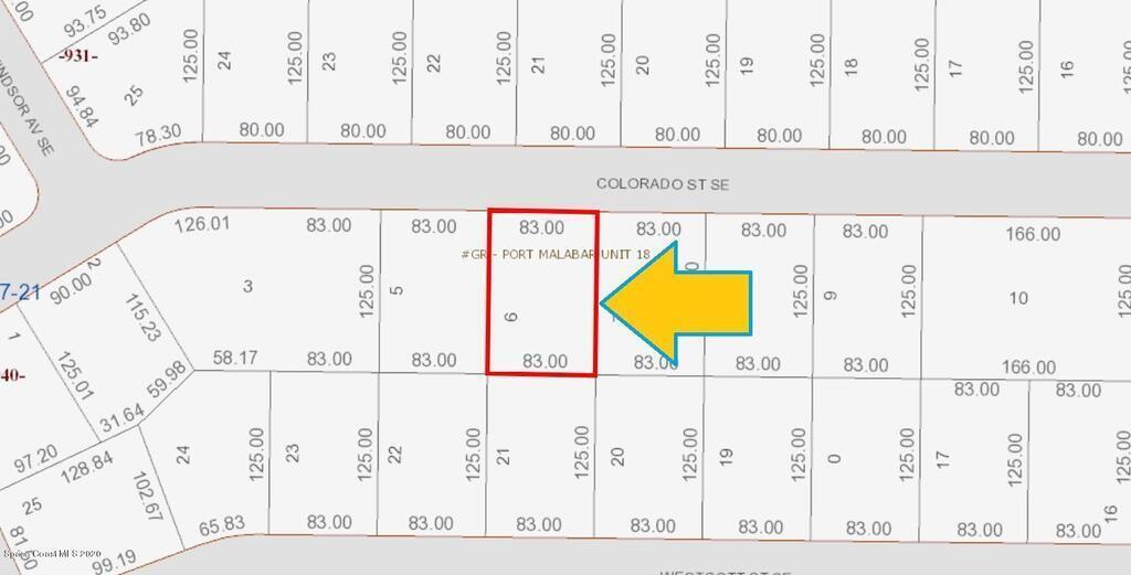 0.24 acre build-able single family residential lot [Rs2 Zoning] available in Port Malabar Unit #18 of Palm Bay. Located in the southeast section near the Bayside Lakes Subdivision and the PGA Majors Golf Course, this lot is just 2.6 miles - 7 minutes to the Publix Supermarket, 4 miles - 8 minutes to Port Malabar Elementary School, 10.7 miles - 23 minutes to Melbourne Airport, and 12.6 miles - 25 minutes to the beaches of Indialantic. From exit #173 of I-95 go east on Malabar Road SE for .6 miles, right on Babcock Street for 3.2 miles, right on Colorado Street. The lot will be on your left.