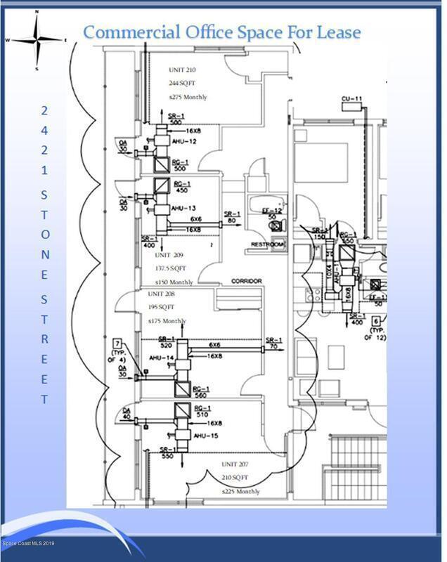Great opportunity to have your business in the Downtown South Expansion Business District. There are 2 office units available for lease. The offices are: 195 sqft, and 244 sqft. Completely renovated. Conveniently located within walking distance to several business on US 1/S Harbor City Blvd and the Primary Dining Retail Core of New Haven Avenue. The space is open and ready for your build-out to your needs. The Offices spaces are part of a new & fully renovated 11 Unit apartment complex. The offices have a common area bathroom, each it's own mailbox/ground floor and primary window facing the sunset. There is limited occupancy allowed upstairs making this a primary location for limited traffic or a semi private office.
