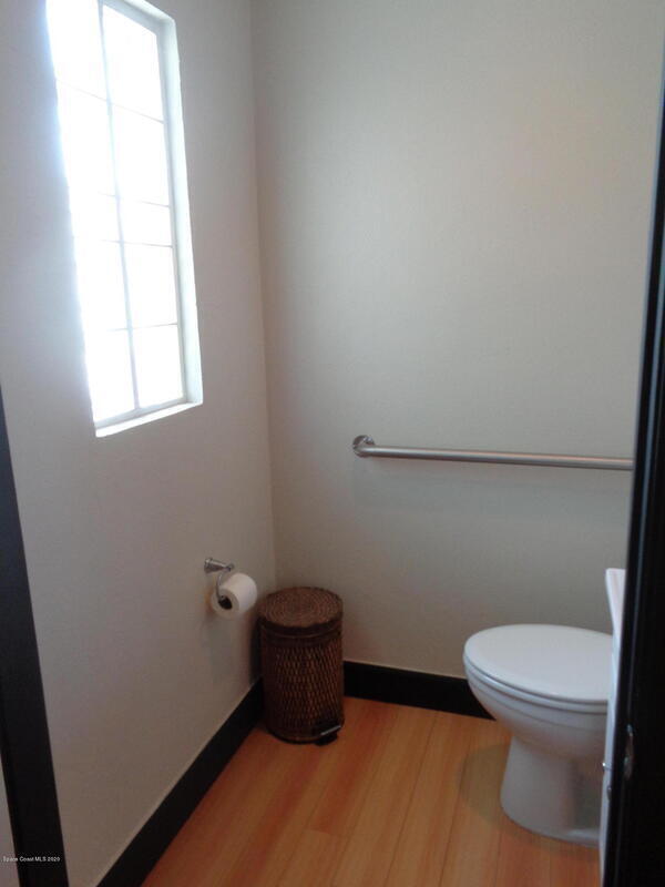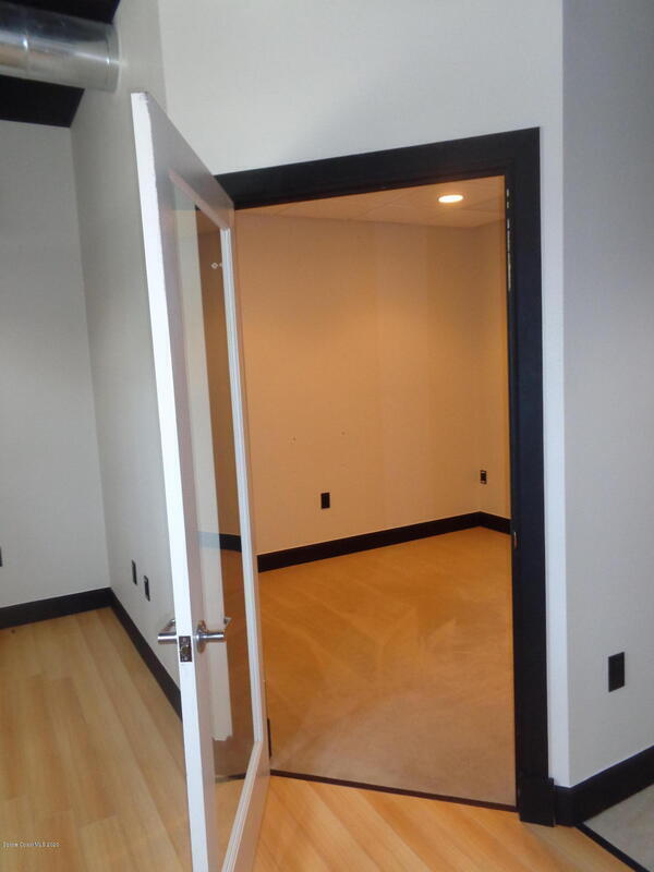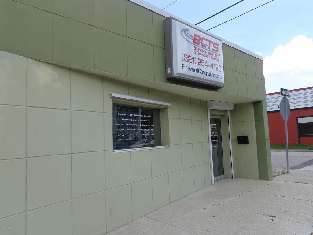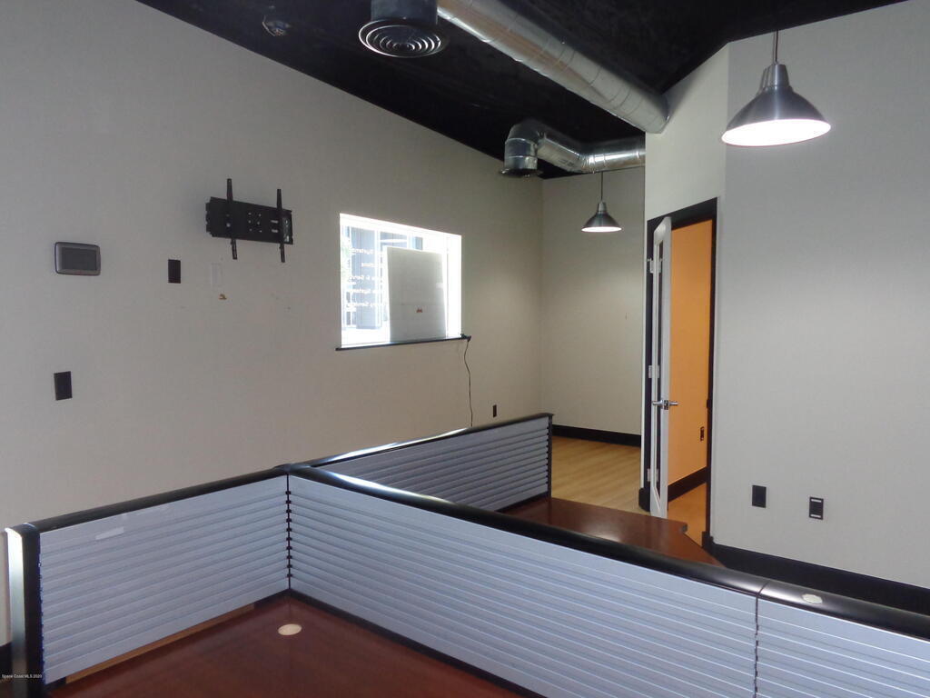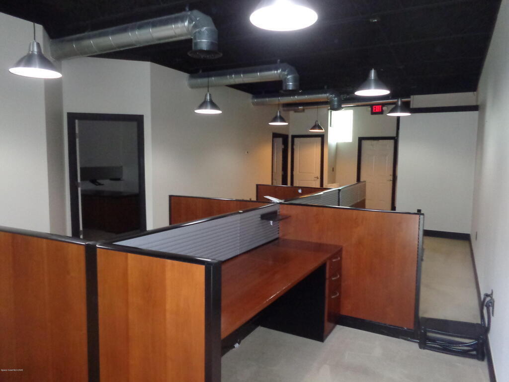 End unit exposed to all West bound Eau Gallie Blvd traffic (20K westbound cars/day) & all US 1 traffic (60K cars/day). Handsome & Modern renovations throughout make this a move in turn-key office situation. 5 well appointed office workspace cubicles provided with 2 separate doored/private offices, one with a desk inplace and wall mount, a conference area, storage area, server/ wiring closet, kitchenette & updated bathroom. All office furnishings as seen come with the property for your use. Easy to see. Rent includes water/sewer, pest control. Has storm shutters for Main window and auto roll down shutter for the front door. Parking allowed for one car in front of the building and then on the side , street side, on Avocado.