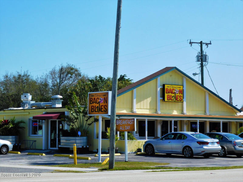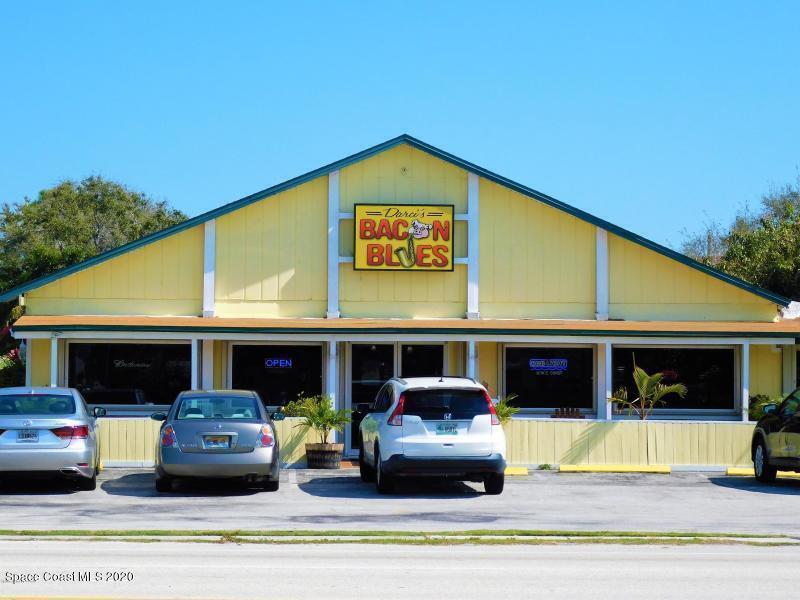 XLNT A1A corner location, high-traffic count, great exposures, parking, pylon & building sign coverage, tremendous business opportunity in area of high-volume sales! Restaurant equipped, over 50 seats, full galley-style kitchen, walk-in cooler w/ new compressor, newer refrigeration, outside wash station, hood, grease trap, floor drains, covered tile patio w/ outside seating, large bar service, dual entrances, ready to open. Approved for 2-COP beer & wine license or 4-COP liquor. All impact fees paid. Tile floors, accent lighting, high-grade surround sound system, newer multi-zone HVAC, balanced air, natural gas, alarm, HD security system, fire suppression system, storm shutters, backyard fenced area, outside storage. Steps to beaches, near Port Canaveral, Beachline, Space Center.
