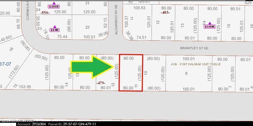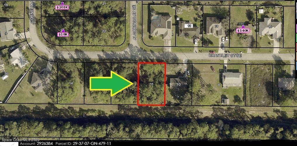 0.23 acre buildable single family residential lot [Rs2 Zoning] available in Port Malabar Unit #12 of Palm Bay. Located in the southeast section, this lot has City Water available and a drainage canal in the rear allowing more privacy, and is just 1.3 miles - 4 minutes to Turner Elementary School, 2 miles - 7 minutes to the Winn Dixie Supermarket, 11.5 miles - 25 minutes to Melbourne Airport, and 13.4 miles - 30 minutes to the beaches of Indialantic. From exit #173 of I-95 go west on Malabar Road NE for .2 miles, left on San Filippo Drive for .5 miles, right on Jupiter Boulevard SE for 1.7 miles, left on Eldron Boulevard for .7 miles, and right on Brantley Street. The lot will be on your left.