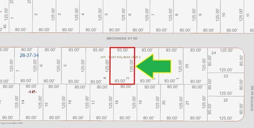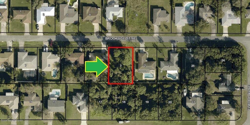 0.24 acre buildable single family residential lot available in Port Malabar Unit #6 of Palm Bay. Located in the northeast section, this lot has City Water available, and is just .9 miles - 4 minutes to Port Malabar Elementary School, 1.7 miles - 4 minutes to the Publix Supermarket, 6.7 miles - 17 minutes to Melbourne Airport, and 8.6 miles - 20 minutes to the beaches of Indialantic. From exit #173 of I-95 go east on Malabar Road SE for .6 miles, left on Babcock Street for .8 miles, right on Fallon Boulevard for .1 mile, left on Addison Avenue for .1 mile, and right on Brookside Street. The lot will be on your right.