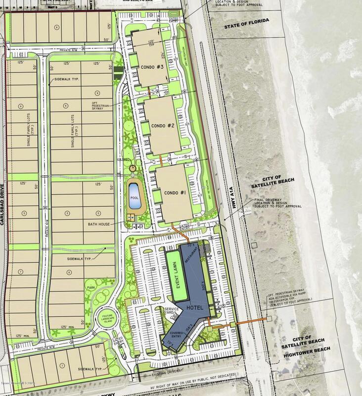 This offering is for The Vue Satellite Beach consisting of 72 platted and approved single family lots. Current infrastructure and amenities are under construction with deliverability scheduled for March 2021. Each lot is priced at $220,000. The Vue will be anchored by three condominium buildings, and most notable a four-star hotel that would have a skybridge connecting the hotel lobby with Hightower Beach Park across A1A. See attached survey for details and legal: The Vue At Satellite Beach, Block A lots 1-8, Block B lots 1-36, Block C lots 1-7, Block D lots 1-21