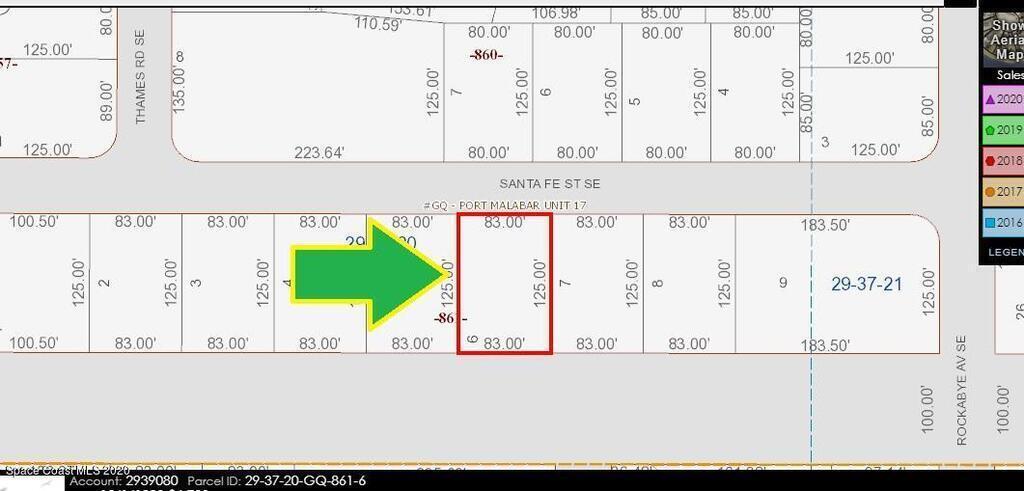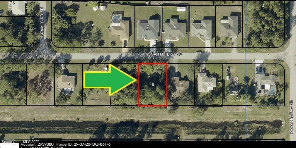 One of 2 side-by-side adjacent buildable single family residential lots on a drainage right-of-way-easement canal available in Port Malabar Unit #17 of Palm Bay. Nicely located in the SE Section near the Bayside Lakes Subdivision and the PGA Majors Golf Course, this lot is just 2.5 miles -7 minutes- to Publix Shopping, 4 miles -10 minutes- to Bayside High and Westside Elementary Schools, 12.2 miles -26 minutes- to the Melbourne Square Mall, and just 14.3 miles -33 minutes- to the beaches in Indialantic. From Exit #173 of I-95 go west on Malabar Road NE. Turn left on San Filippo Drive and proceed south for 4.4 miles. Turn right on Ramsdale Drive SE, right on Rockabye Avenue SE and left on Santa Fe Street, The lot will be on your left.