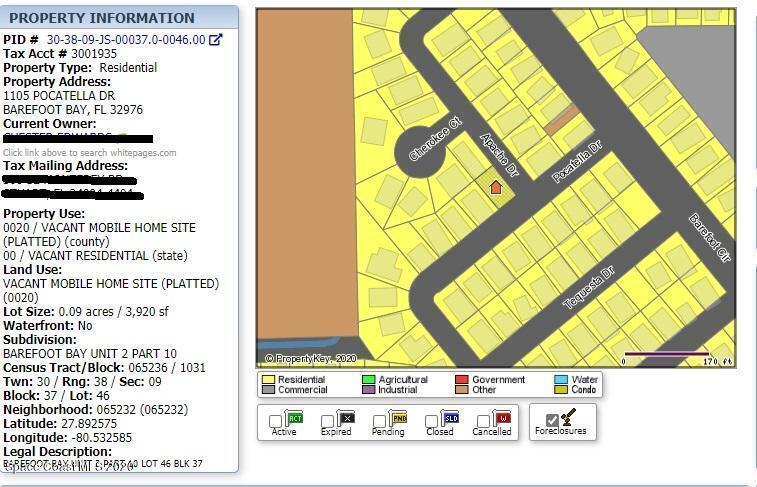 Property Listing Details for 1105 Pocatella Drive, Barefoot Bay, FL 32976