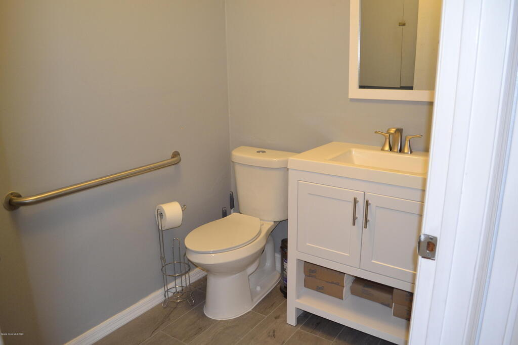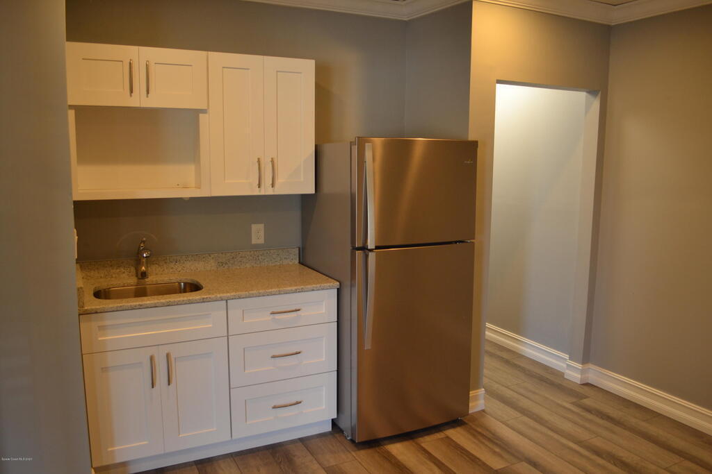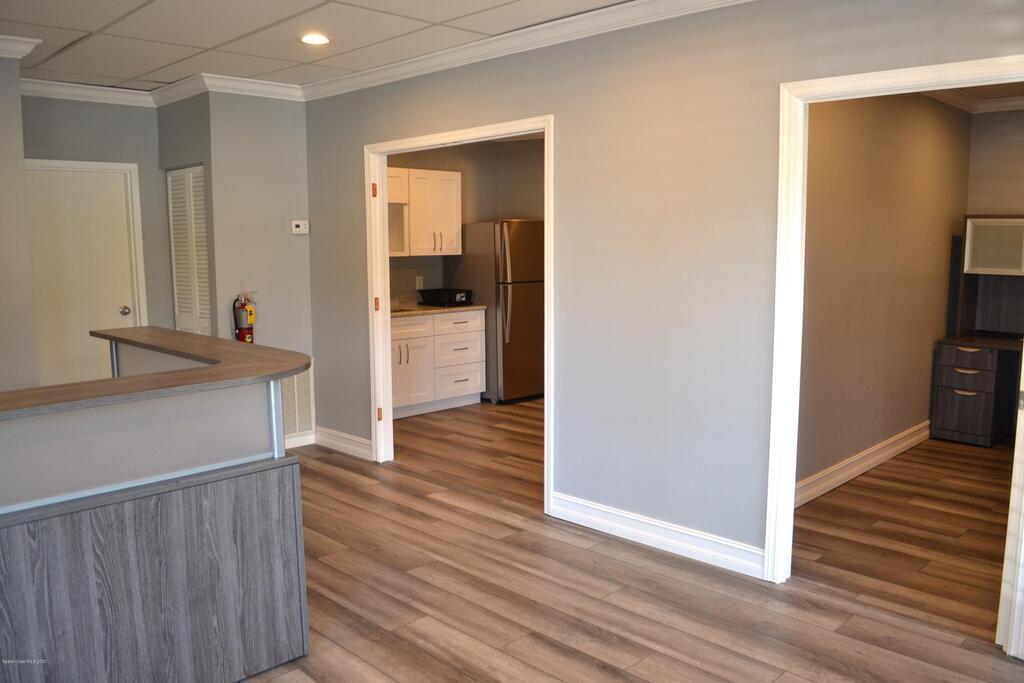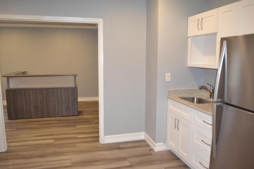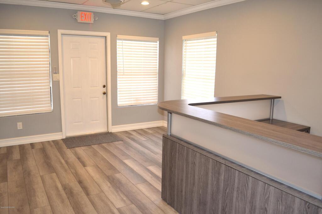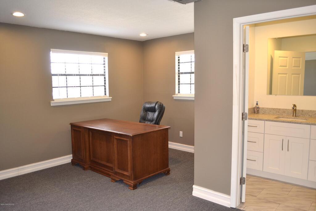 Beautifully Renovated Two Story Office Space for Rent. A total of 1,226 sq ft. The first floor features 701 sq. ft. Lobby/ reception area, an office and a conference room/break room with sink and refrigerator and room for a microwave, a half bathroom and plenty of storage room under the stairs. The second floor is 525 sq ft, it offers a huge bright office with a full bathroom. Convenient, central location, close to airport, Holmes Hospital, mall, downtown Melbourne historic area. Water included on rent. Two desk included (can be removed by landlord if requested). Perfect for an office with light traffic.