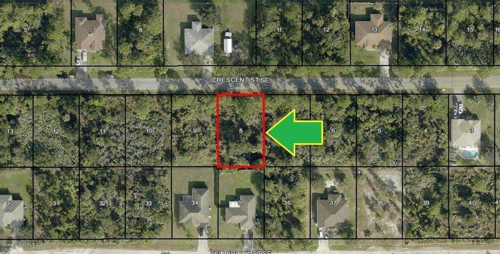 One of 2 side-by-side adjacent single family residential lots available in Port Malabar Unit #25 of Palm Bay (the other is 246 Crescent). Located in the southeast section, this buildable residential lot is just 2.6 miles - 5 minutes to Westside Elementary School, 4.2 miles - 8 minutes to the Publix Supermarket, 14.6 miles - 27 minutes to Melbourne Airport, and 16.5 miles - 31 minutes to the beaches of Indialantic. From exit #173 of I-95 go west on Malabar Road NE for .2 miles, left on San Filippo Drive SE for 6.9 miles, right on Fortune Avenue for .2 miles, and left on Crescent Street. The lot will be on your left. Buy one lot or both for a larger homestead!