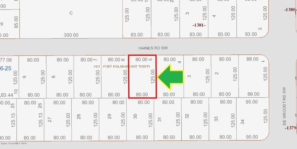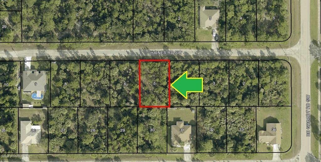0.23 acre buildable single family residential lot available in Port Malabar Unit #30 of Palm Bay. Located in the rural southwest section, this lot is just 1.5 miles - 4 minutes to Westside Elementary and Bayside High Schools, 3.5 miles - 7 minutes to the Publix Supermarket, 15 miles - 30 minutes to Melbourne Airport, and 17.1 miles - 34 minutes to the beaches of Indialantic. From exit #176 of I-95 go west on Palm Bay Road NE for .7 miles, left on Minton Road for 3.3 miles, right on Jupiter Boulevard for .1 mile, left on DeGroodt Road SW for 4.4 miles, and right on Haines Road. The lot will be on your left.