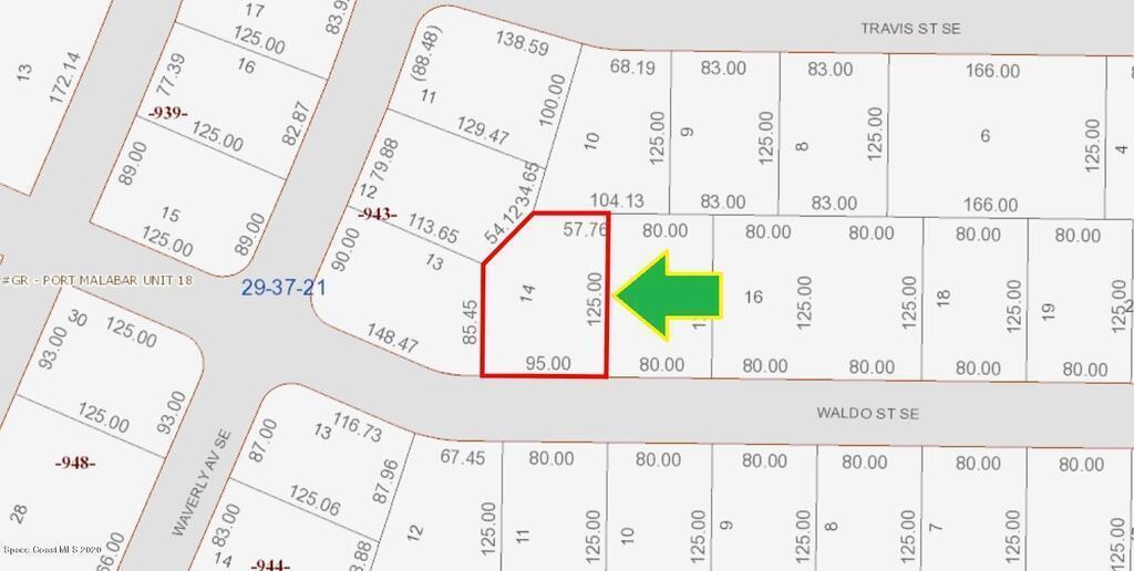 0.22 acre buildable single family residential lot available in Port Malabar Unit #18 of Palm Bay. Located in the southeast section, this lot is just 2.7 miles - 7 minutes to the Publix Supermarket, 4.3 miles - 9 minutes to Bayside High School, 11 miles - 23 minutes to Melbourne Airport, and 13.9 miles - 25 minutes to the beaches of Indialantic. From exit #173 of I-95 go west on Malabar Road NE for .2 miles, left on San Filippo Drive SE for 3.6 miles, and left on Waldo Street. The lot will be on your left.