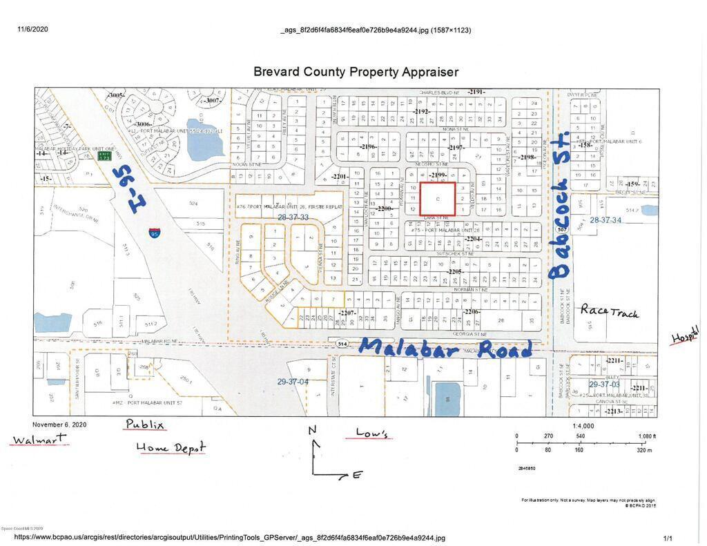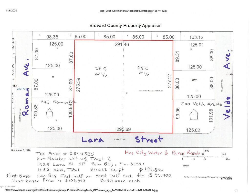 Buyers choice: East half or West half. Location, Location, Location! Rare, near one acre NE Palm Bay lot with city Water and Nice paved roads. Near all conveniences, Malabar Road and Babcock at I-95 interchange. Publix, Walmart, Hospital and Medical facilities, Home Depot / Lowe's etc. Owner can finance with 30% down payment or less. $200,000 for both halves (1.86 acres total).