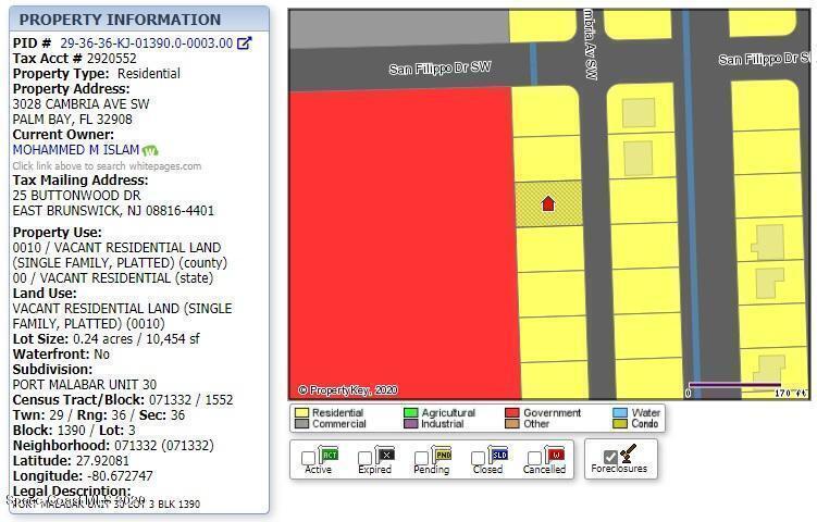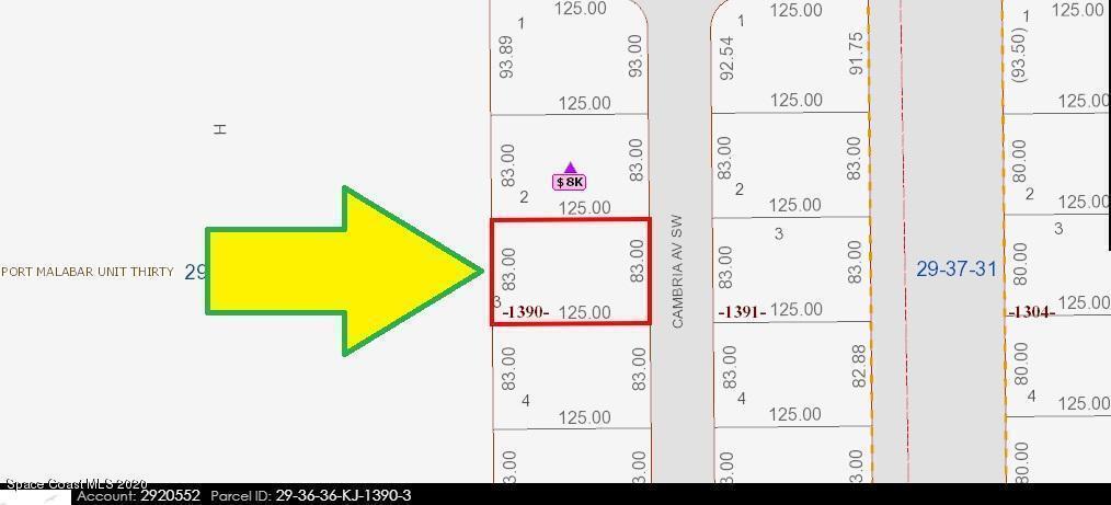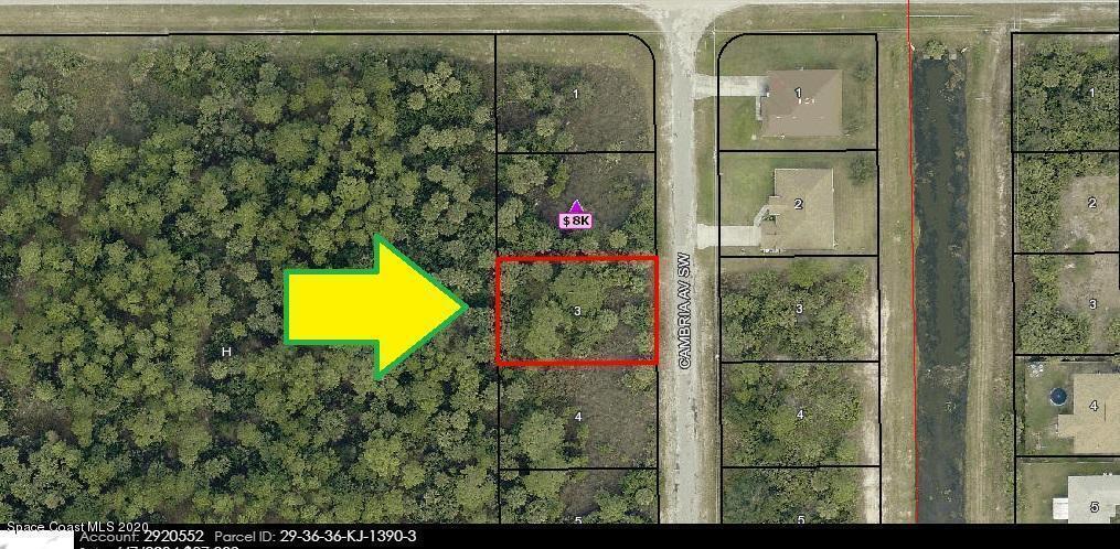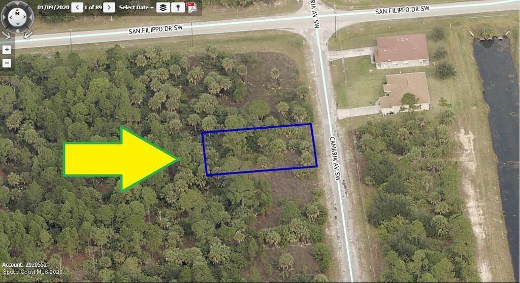 0.24 acre buildable single family residential lot available in Port Malabar Unit #30 of Palm Bay. Located in the southwest section, this lot is just 2 miles - 4 minutes to Westside Elementary School, 3.9 miles - 8 minutes to the Publix Supermarket, 14.8 miles - 29 minutes to Melbourne Airport, and 16.7 miles - 33 minutes to the beaches of Indialantic. From exit #173 of I-95 go west on Malabar Road for .2 miles, left on San Filippo Drive SE for 7.4 miles, and left on Cambria Avenue. The lot will be on your right.