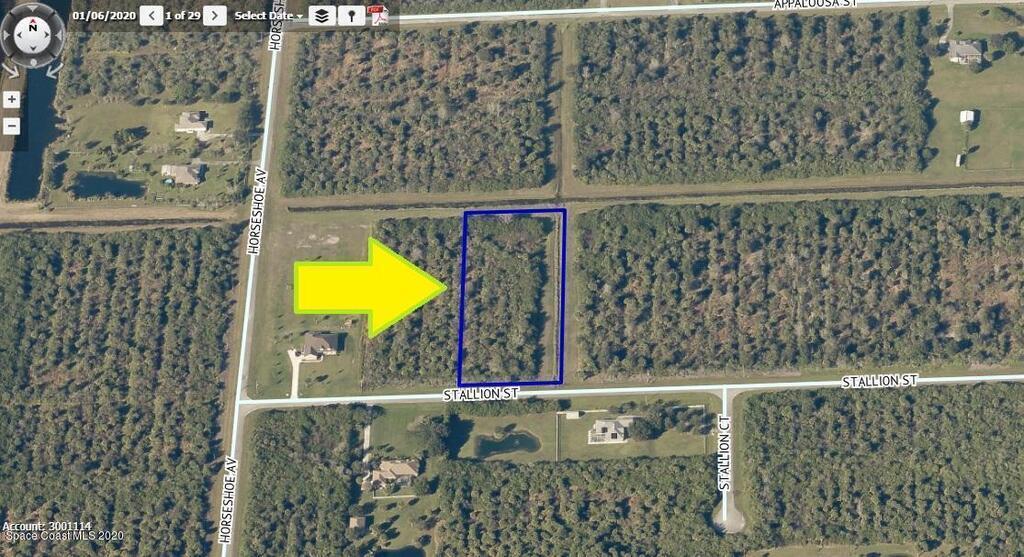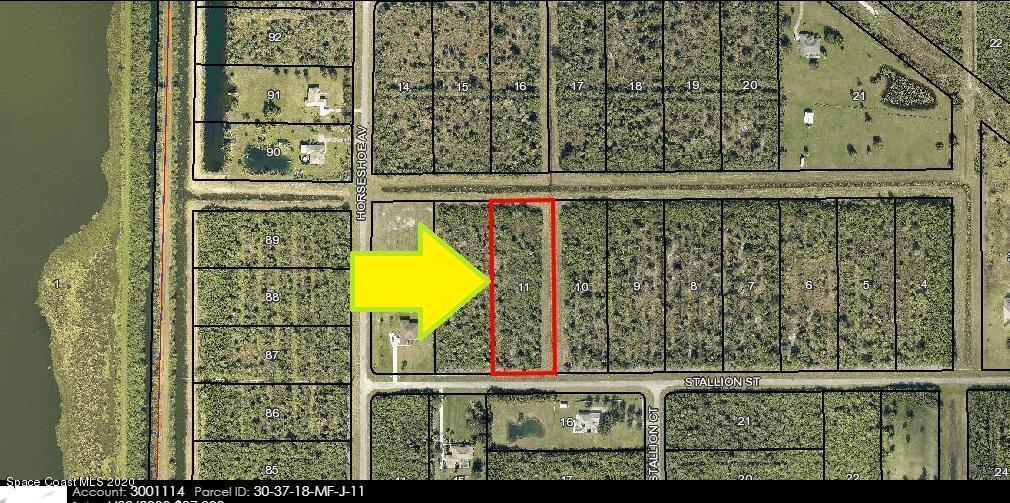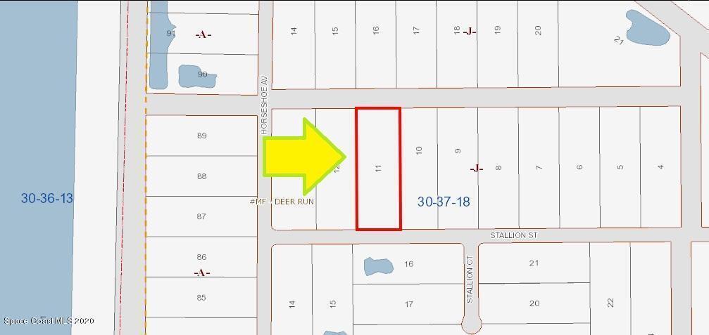 Oversized 2.75 acre Vacant Residential Lot (Zoned Agricultural -AU- with allowing 1 horse per acre) with a drainage right-of-way easement canal in the back of the lot available in the Highly Desirable Equestrian Deer Run Community in South Brevard County, where homes are a minimum of 2,100 sq.ft. under air. Your new property comes with many community amenities, (i.e. stables, tennis courts, clubhouse/rec room) and is about 8 miles to the Indian River/U.S. Highway #1, and 20 minutes to WalMart Supercenter. From Exit #166 of I-95 go right and merge onto St. Johns Heritage Parkway. Turn left on Babcock Street and right on Deer Run Road. Proceed 2.3 miles and turn left on Stallion Street and proceed 1 miles to the lot.