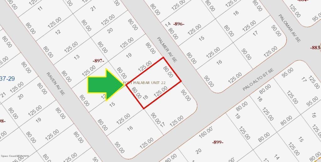 0.23 acre buildable single family residential lot [Rs2 Zoning] available in Port Malabar Unit #22 of Palm Bay. Located in the southeast section near the Bayside Lakes Subdivision, this lot is just 3.1 miles - 7 minutes to the Publix Supermarket, 3.3 miles - 7 minutes to Sunrise Elementary School, 12.8 miles - 27 minutes to Melbourne Airport, and 14.6 miles - 30 minutes to the beaches of Indialantic. From exit #173 of I-95 go west on Malabar Road NE for .2 miles, left on San Filippo Drive SE for 5.2 miles, right on Palomar Avenue for .1 mile, left on Palo Alto Street for .1 mile, and right on Palmer Avenue. The lot will be on your left.