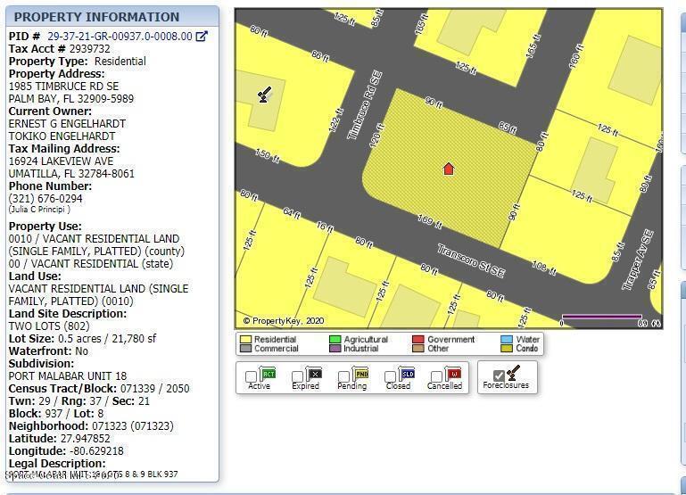 Property Listing Details for 1985 Corner Lot On Timbruce Road, Palm Bay, FL 32909