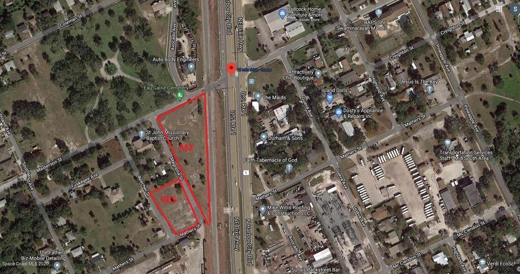 High visibility industrial land located at the corner of Masterson and US1. Traffic counts on this segment of US1 average around 44,000 cars per day. Easy access to Aurora road or Masterson allow this property to easily serve beachside and the greater Melbourne area. This property is mostly zoned M2, there is a small portion that is residential. M2 zoning is the most generous zoning available in the city of Melbourne allowing just about any use. The city has indicated in the past that parking, retention, or possibly commercial uses could be placed on the residential portion of the property. Owner is very flexible offfering lease or sale terms, owner financing, or other creative ideas?