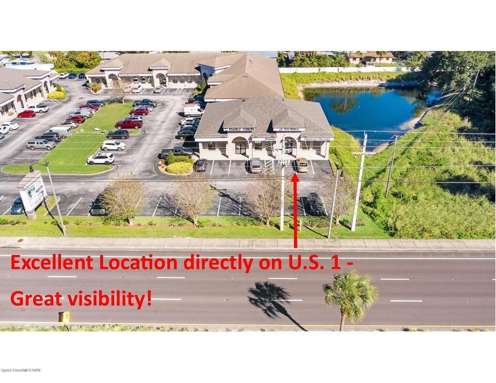 Fantastic office building (1/2 duplex) directly on U.S. Hwy 1! GREAT LOCATION & VISIBILITY! NEWER ROOF! Not your typical office building. You'll find high ceilings, numerous windows for a light and bright interior. Spacious reception area with granite counter tops and ample room for visitors and staff. 3 enclosed, private offices, kitchen, 2 bathrooms, and a large open space to use for whatever your needs are. Brand new roof. Building is in front of busy complex and is very close/fronts U.S. 1 for EXCELLENT visibility. Signage permitted on building front as well as space on complex sign. GREAT OFFICE CONDO!
