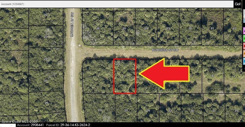 0.23 acre single family residential lot [Rs2 Zoning] available in the buildable Port Malabar Unit #49 of Palm Bay. Nicely located in a very rural setting of the SW section, this lot is just 2.4 miles -5 minutes- to the famous Compound area, 2.6 miles -7 minutes- to Publix Shopping, 1.4 miles -4 minutes- to Bayside High and West Side Elementary Schools, 11.4 miles -24 minutes- to the Melbourne Square Mall, and just 17.2 miles -35 minutes- to the beaches in Indialantic. From Exit #176 of I-95 go west on Palm Bay Road NE. Turn left on Minton Road and proceed south for 3.3 miles. Turn right on Jupiter Boulevard SW and left on De Groodt Road SW. Proceed south for 2.5 miles and turn right on J.A. Bombardier Boulevard Proceed west for 0.9 miles and turn right on Madden avenue and R on Burgess.