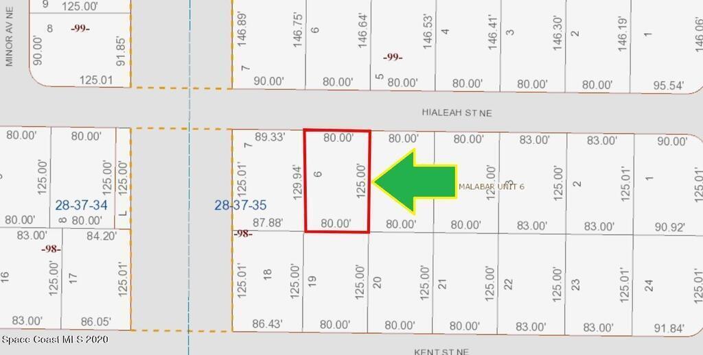 0.23 acre buildable single family residential lot available in Port Malabar Unit #6 of Palm Bay. Located in the northeast section, this lot has City Water available and is just 1.4 miles - 5 minutes to Port Malabar Elementary School, 2.7 miles - 6 minutes to the Publix Supermarket, 7.7 miles - 17 minutes to Melbourne Airport, and 9.5 miles - 21 minutes to the beaches of Indialantic. From exit #173 of I-95 go east on Malabar Road SE for .6 miles, left on Babcock Street for .8 miles, right on Fallon Boulevard for 1.0 mile, and left on Hialeah Street. The lot will be on your right.