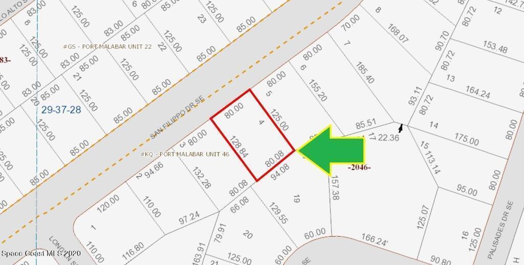 One of Two side-by-side adjacent single family residential lots [Rs2 Zoning} with city water available located in Port Malabar Unit #46 of Palm Bay. Nicely located in the SE Section near the PGA Majors Golf Course and the Bayside Lakes Subdivision, this lot is just 3.3 miles -7 minutes- to Publix Shopping, 4.6 miles -8 minutes- to Bayside High School, 12.4 miles -26 minutes- to the Melbourne Square Mall, and just 14.5 miles -30 minutes- to the beaches in Indialantic. From Exit #173 of I-95 go west on Malabar Road NE. Turn left on San Filippo Drive SE and proceed south for 5.1 miles. 2115 and 2123 San Filippo Drive SE will be on the left. Purchase 1 lot or both lots for more room, extra privacy, or a larger home.