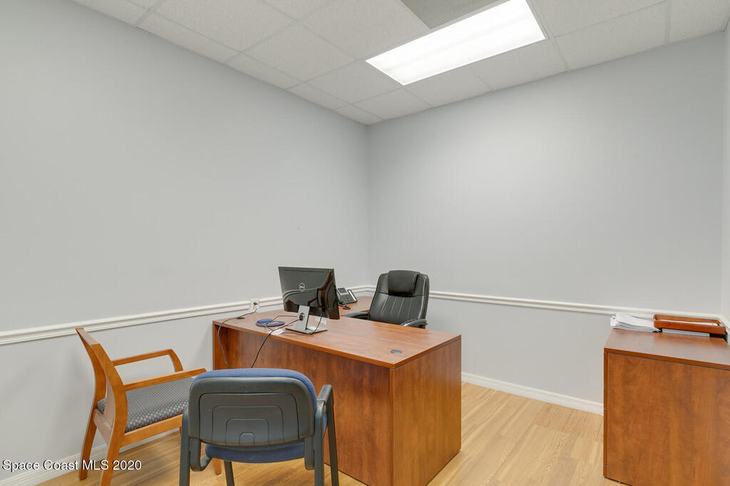 Professional/Medical Office Condominium; Reception/Waiting, Conference/Procedure Room, 2 Executive/ Doctors' Offices, 7 Offices/Exam Rooms, Breakroom, Rear Entrance, Open Area for Creative Space or Cubes. The Open Area space can also could be leased out to others with its own entrance and restroom +/-800 SF. This corridor lies between Steward and Health First Hospitals, and near Health First Gateway Facility. It is also the center of Melbourne's High-Tech District - Harris L-3, GE, Extant, Northrup Grumman, Rockwell, Embraer and Melbourne International Airport and more. Convenient to I-95, US-1 and the beaches.