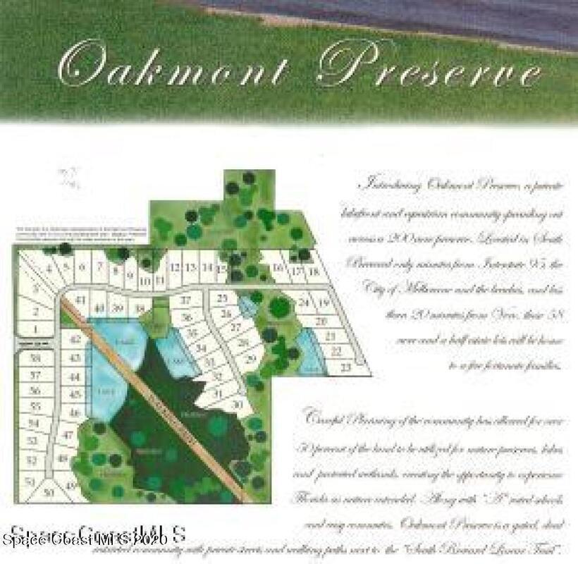 Oakmont Preserve 1.16 Acres In Gated Community. Careful Planning of the Community has allowed for 50% of the 200-hundred-acre community to be utilized for Lakes and nature preserves. Acre plus lots, deed restricted to protect your investment for years to come, private streets, underground utilities Easy access to I 95 and U.S 1 for an easy commute, close by employers like Harris, Intersil Northrup-Grumman, Health First and many others. Close to Medical Facilities, Shopping, schools, Restaurant's, Banks. A short drive to beaches. 30 minutes from Vero Beach. Oakmont Preserve is your opportunity of living close to town but the serenity of living on your own private estate size lot surround by lakes and nature preserves. Florida as nature intended LOT 19