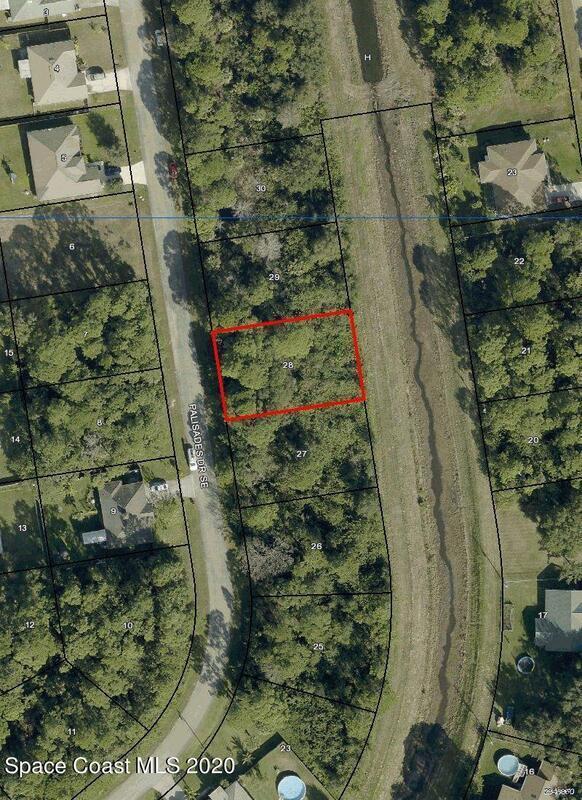 Cleared lot with city water available! Great location in Unit 46, with close proximity to Bayside Lakes and new I-95 intersection. Canal directly behind for additional privacy! Zoned for excellent schools. Seller has survey and septic permit available.