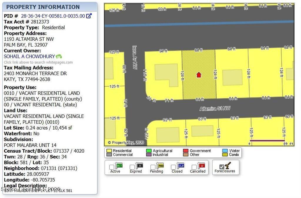 0.24 acre buildable single family residential lot [Rs2 zoning] available in Port Malabar Unit #14 of Palm Bay. Located in the northwest section, this lot has a drainage canal in the rear allowing more privacy, and is just 2.1 miles - 6 minutes to Jupiter Elementary School, 2.4 miles - 5 minutes to the Winn Dixie Supermarket, 11.2 miles - 21 minutes to Melbourne Airport, and 14 miles - 25 minutes to the beaches of Indialantic. From exit #176 of I-95 go west on Palm Bay Road NE for .7 miles, left on Minton Road for 1.7 miles, right on Americana Boulevard NW for 1.9 miles, right on Jupiter Boulevard for .1 mile, and left on Altamira Street. The lot will be on your right.