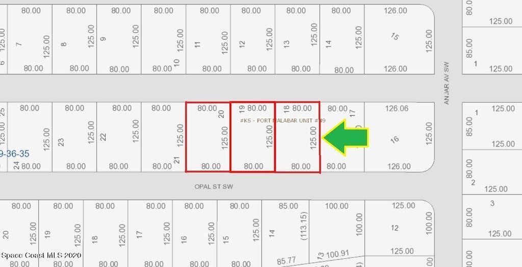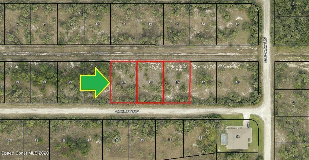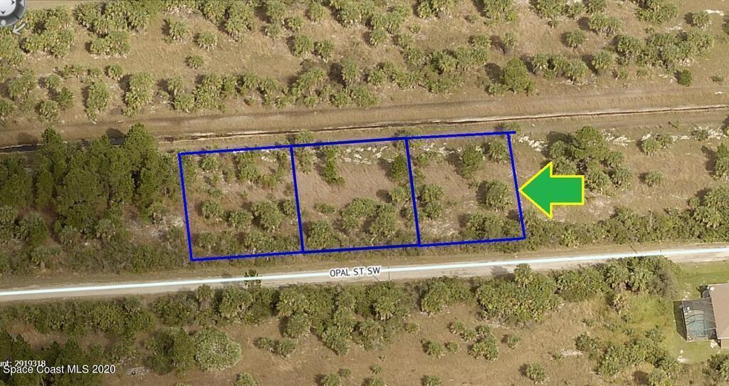 3 side-by-side adjacent single family residential lots [Rs2 Zoning] available in Port Malabar Unit #49. Nicely located in the rural SW section **with powerlines across the street** and near the famous Compound area, this lot is just 5.2 miles -10 minutes- to Publix Shopping, 3.8 miles -7 minutes- to Bayside High and WestSide Elementary Schools, 9 miles -16 minutes- to the Shoppes of Palm Bay and just 18.5 miles -36 minutes- to the beaches in Indialantic. From Exit #176 of I-95 go west on Palm Bay Road, south on Minton, West on Jupiter, and south on De Groodt Road SW for 4.6 miles. Turn right on St. Andre Boulevard and proceed south for 1.2 miles. turn right on Madden Avenue, right on Leafy Road which becomes Anjar Avenue and left on Opal Street to 629, 643, and 657 Opal on your right