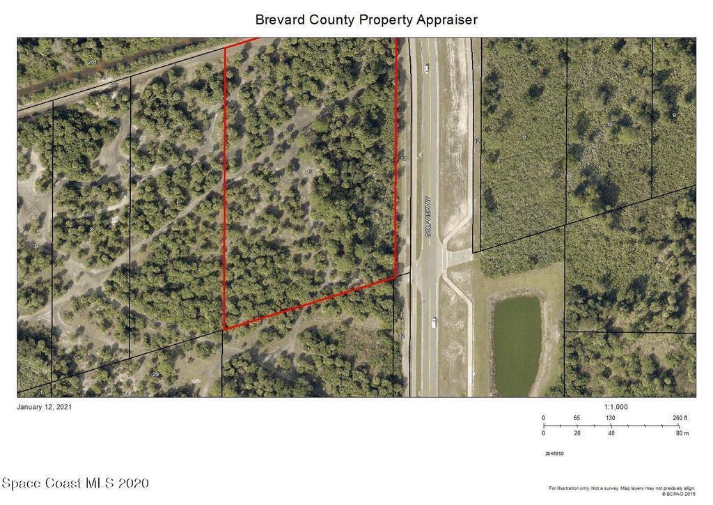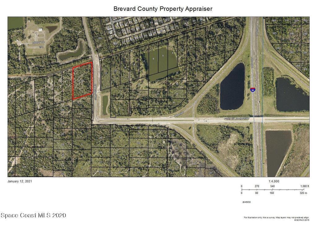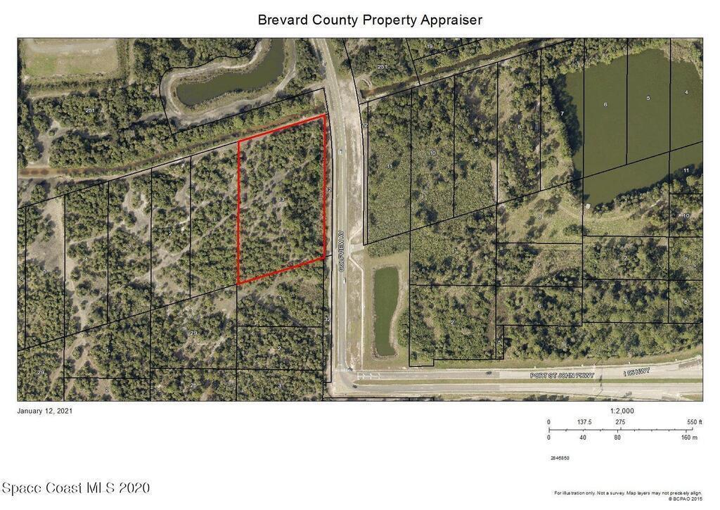4.17 acres at a location which is good for future growth. Parcel sits beside Golfview Ave which connects to the back part of Port St John and the access to I-95. County maps does not show wetlands on the property. Access to the property is by easement on the south side of the property. A road will be required to be built on the south easement a distance of at least 150ft in order to obtain a building permit. Great site for long term investment.
