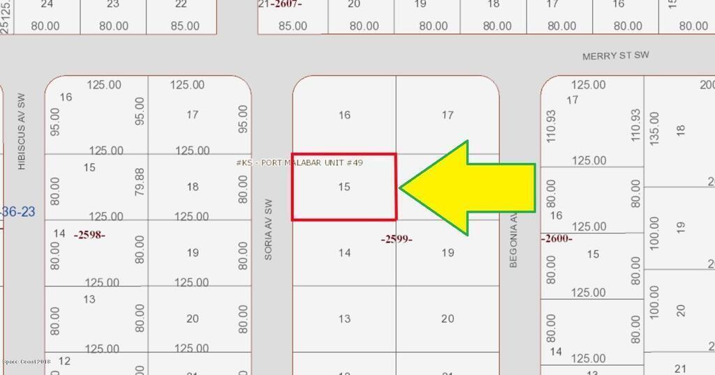 0.23 acre build-able single family residential lot [Rs2 Zoning and homes nearby!!] available in Port Malabar Unit #49 of Palm Bay. Located in the southwest section near the Compound, this lot is just 1.6 miles - 4 minutes to Bayside High School, 3.0 miles - 7 minutes to Publix Supermarket, 14.5 miles - 30 minutes to Melbourne International Airport, and 17.2 miles - 33 minutes to the beaches of Indialantic. From exit #176 of I-95 go west on Palm Bay Road NE for .7 miles, left on Minton Road for 3.3 miles, right on Jupiter Boulevard SW for .1 mile, left on DeGroodt Road SW for 2.5 miles, right on J.A.Bombardier Boulevard for .9 miles, left on Madden Avenue for .4 miles, right on Merry Street SW for .1 mile, and left on Soria Avenue. The lot will be on your left. Please see agent remarks.