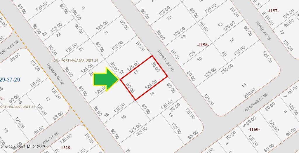 0.23 acre buildable single family residential lot available in Port Malabar Unit #24 of Palm Bay. Located in the southeast section near the Bayside Lakes Subdivision and PGA Majors Golf Course, , this lot is just 2.6 miles - 6 minutes to the Publix Supermarket, 3.9 miles - 8 minutes to Bayside High School, 13.7 miles - 28 minutes to Melbourne Airport, and 16.5 miles - 32 minutes to the beaches of Indialantic. From exit #173 of I-95 go west on Malabar Road NE for ,2 miles, left on San Filippo Drive SE for 5.7 miles, right on Cogan Drive for .4 miles, left on Reading Street for .2 miles, and right on Trinity Avenue. The lot will be on your left.