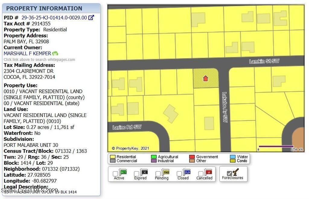 Property Listing Details for 2728 Corner Lot On Lakatos & Lamkin Avenue, Palm Bay, FL 32908