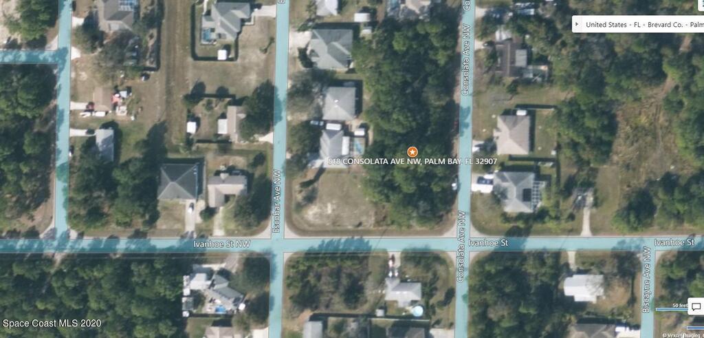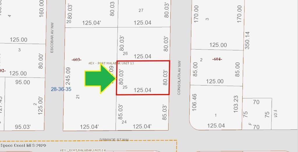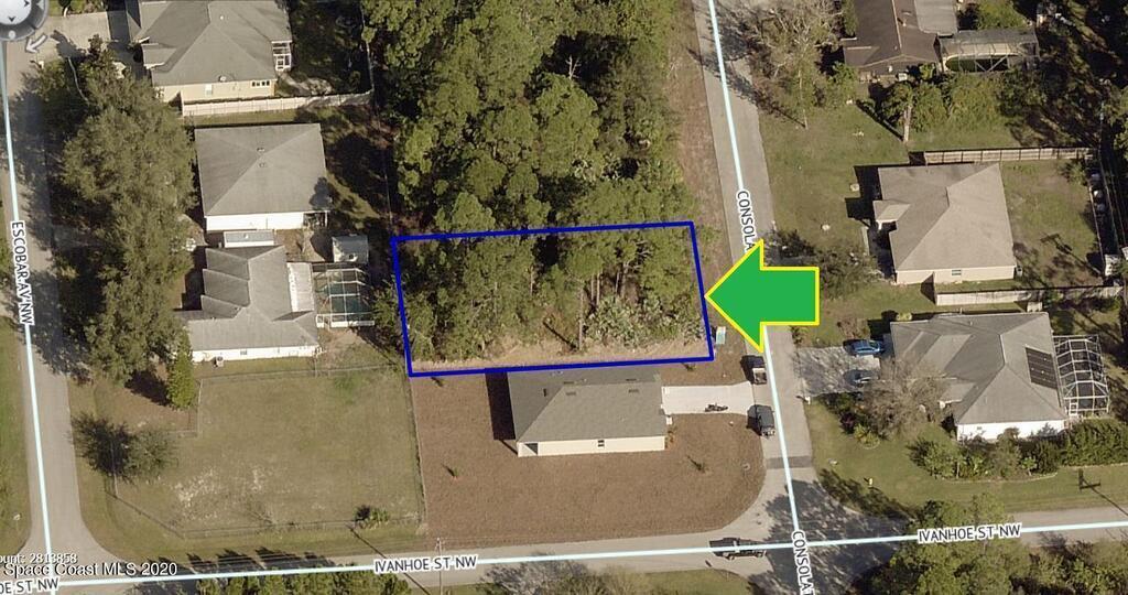 0,23 acre buildable residential lot available in Port Malabar Unit 13 of Palm Bay. Located in the northwest section, this lot has City Water and Sewer available, and is just 1.5 miles - 5 minutes to McAuliffe Elementary School, 2.1 miles - 6 minutes to the Winn Dixie Supermarket, 10.1 miles - 22 minutes to Melbourne Airport, and 12.9 miles - 28 minutes to the beaches of Indialantic. From exit #176 of I-95 go west on Palm Bay Road NE for .7 miles, left on Minton Road for 1.7 miles, right on Americana Boulevard NW for .8 miles, right on Justine Avenue for .1 mile, left on Fernandina Street for .1 mile, left on Commargo Road for .3 miles, road turns left and becomes Consolata Avenue. The lot will be on your right.