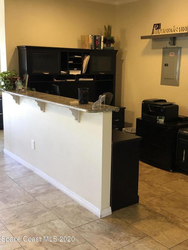 Well Maintained & Delightful Office Space! Interior plan features a spacious lobby area for plenty of comfortable seating & has large windows allowing for that wonderful natural lighting. Nice reception area w/high top granite counter for greeting your customers. There is a small conference room off the additional space near reception area. Optional office space or storage in back. Rear door to back side of building. Located in area of high traffic and easily visible & accessible. Plaza is maintained and offers a nice presence. Great exposure for your business! Owner is LREB.