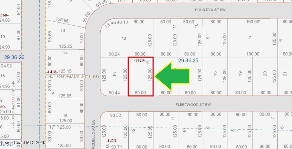 One of 2 side-by-side adjacent single family lots available in Port Malabar Unit #30 of Palm Bay (the other is 597 Fleetwood). Located in the southwest section, this 0.23 acre buildable residential lot is just 2.2 miles - 6 minutes to Westside Elementary School, 4.2 miles - 9 minutes to the Publix Supermarket, 15.6 miles - 31 minutes to Melbourne Airport, and 19.4 miles - 35 minutes to the beaches of Indialantic. From exit #176 of I-95 go west on Palm Bay Road NE for .7 miles, left on Minton Road for 3.3 miles, right on Jupiter Boulevard for .1 mile, left on DeGroodt Road for 4.2 miles, right on Frazer Street for .2 miles, left on Lakeland Ave. for .1 mile, right on Labra Rd. for .1 mile, left on Fitzpatrick for .2 miles, and right on Fleetwood St. The lot will be on your right.
