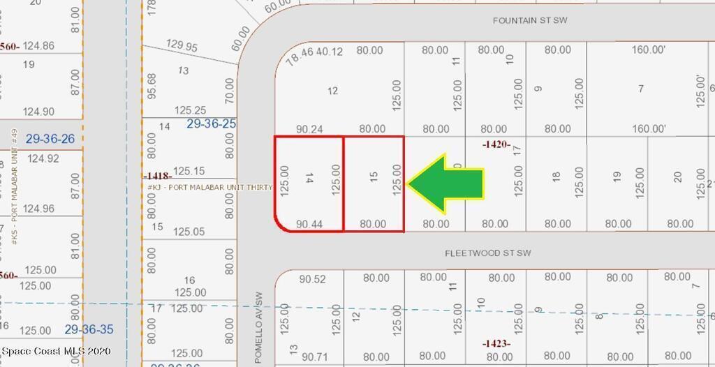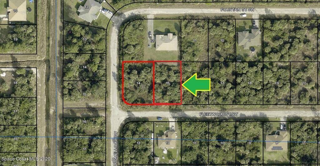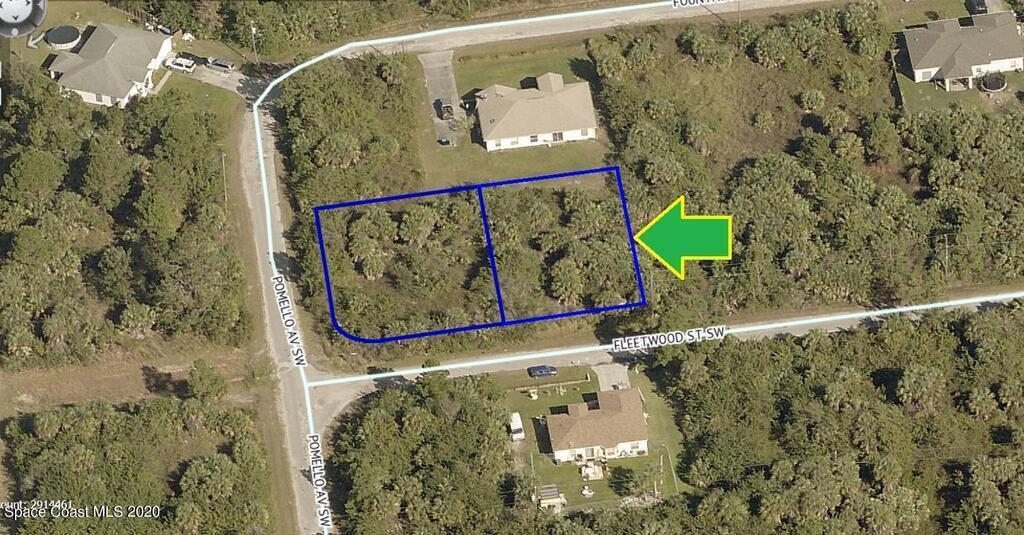 0.49 acre 2 side-by-side adjacent buildable single family residential lot available in Port Malabar Unit #30 of Palm Bay. Located in the southwest section, this lot is just 2.2 miles - 6 minutes to Westside Elementary School, 4.2 miles - 9 minutes to the Publix Supermarket, 15.6 miles - 31 minutes to Melbourne Airport, and 19.4 miles - 35 minutes to the beaches of Indialantic. From exit #176 of I-95 go west on Palm Bay Road NE for .7 miles, left on Minton Road for 3.3 miles, right on Jupiter Boulevard for .1 mile, left on DeGroodt Road for 4.2 miles, right on Frazer Street for .2 miles, left on Lakeland Ave. for .1 mile, right on Labra Rd. for .1 mile, left on Fitzpatrick for .2 miles, and right on Fleetwood St. The lot will be on your right at the corner with Polmello.