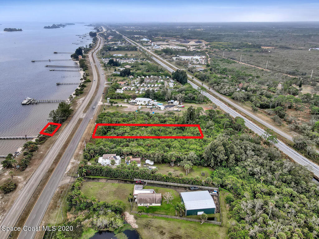 NEARLY 2 ACRES! Build your private Deluxe Estate on this beautiful Riverfront Lot! Great opportunity to build a Riverfront home and run your business in the backyard. Gorgeous Indian River view! Approximately 75 feet of riverfront and US-1 frontage! This listing includes 2 lots: one is .73 acres, the other is 1.21 acres and adjacent to the smaller one on the West side. Both lots are Zoned commercial and can be used for a business or single family home.