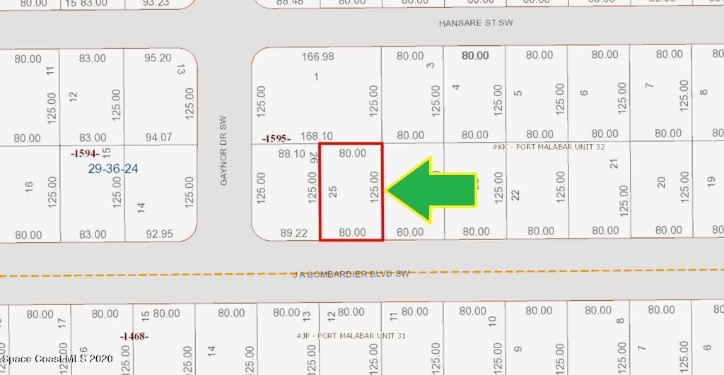 0.23 acre buildable residential lot available in Port Malabar Unit 32 of Palm Bay. Located in the southwest section, this lot has City Water available, and is just .6 miles - 2 minutes to Bayside High School, 1.9 miles - 5 minutes to the Publix Supermarket, 13.6 miles - 29 minutes to Melbourne Airport, and 17 miles - 34 minutes to the beaches of Indialantic. From exit #176 of I-95 go west on Palm Bay Road NE for .7 miles, left on Minton Road for 3.3 miles, right on Jupiter Boulevard for .1 mile, left on DeGroodt Road SW for 2.5 miles, and right on J.A.Bombardier Boulevard. The lot will be on your right.
