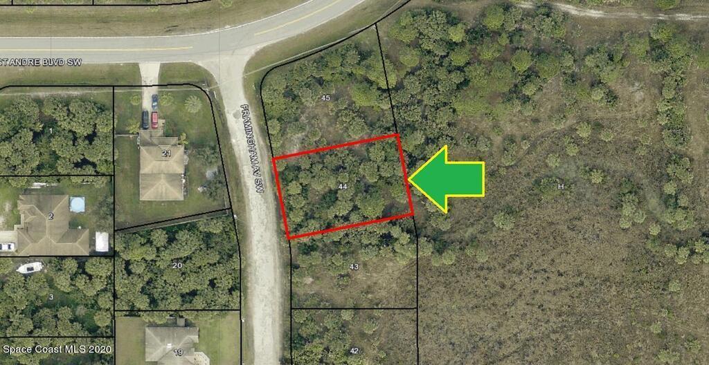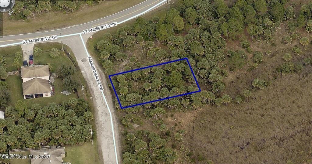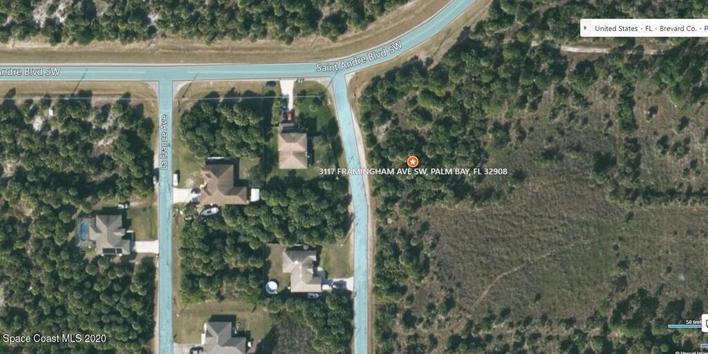 One of 3 side-by-side adjacent lots available in Port Malabar Unit #30 of Palm Bay (the others are 3107 & 3127 Framingham). Located in the southwest section, this buildable residential lot is just 2 miles - 4 minutes to Westside Elementary School, 3.9 miles - 8 minutes to the Publix Supermarket, 15.2 miles - 30 minutes to Melbourne Airport, and 17.1 miles - 32 minutes to the beaches of Indialantic. From exit #176 of I-95 go west on Palm Bay Road NE for .7 miles, left on Minton Road for 3.3 miles, right on Jupiter Boulevard for .1 mile, left on DeGroot Road SW for 4.6 miles, right on St. Andre Boulevard for .2 miles, and left on Framingham Avenue. The lot will be on your left.