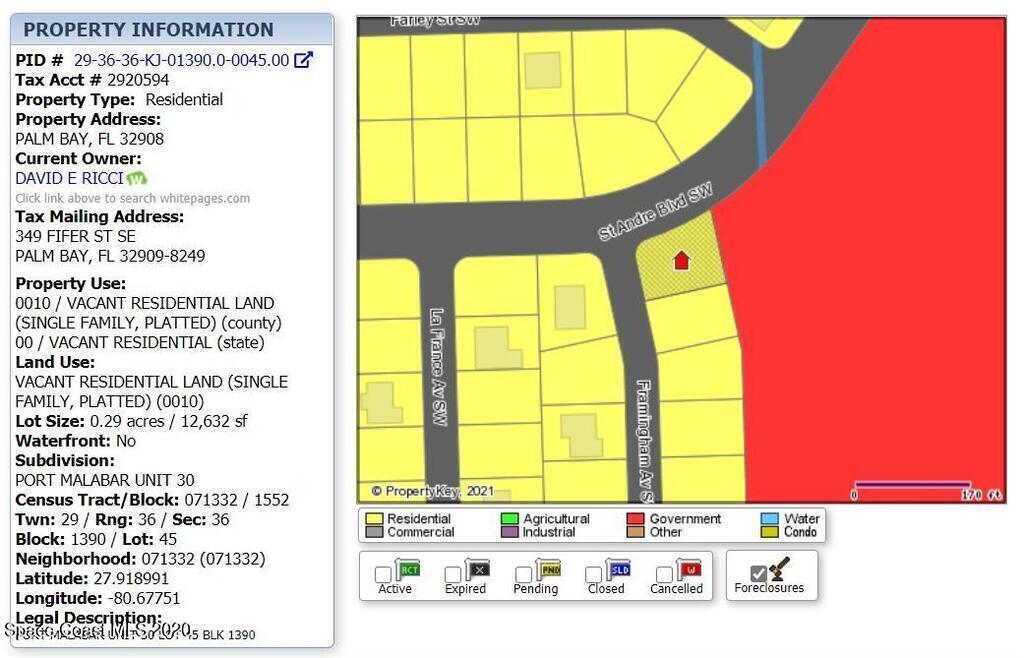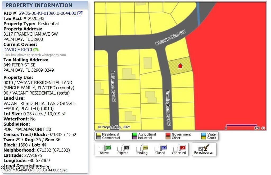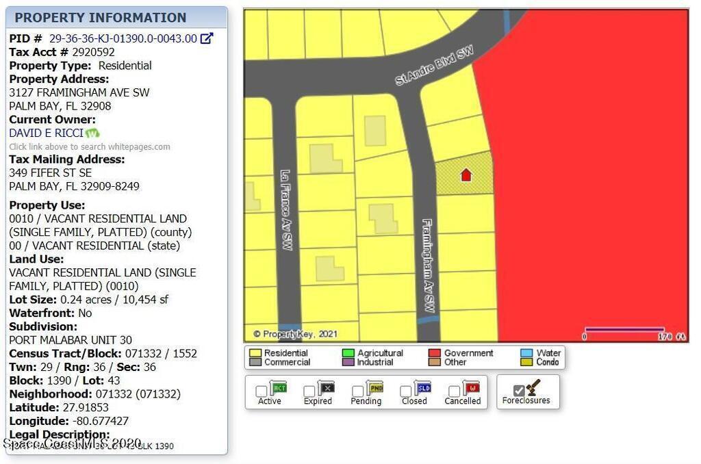 Property Listing Details for 3107-3127 Triple Lot On Framingham Avenue, Palm Bay, FL 32908