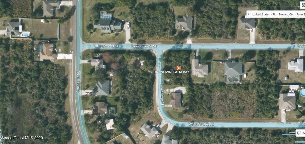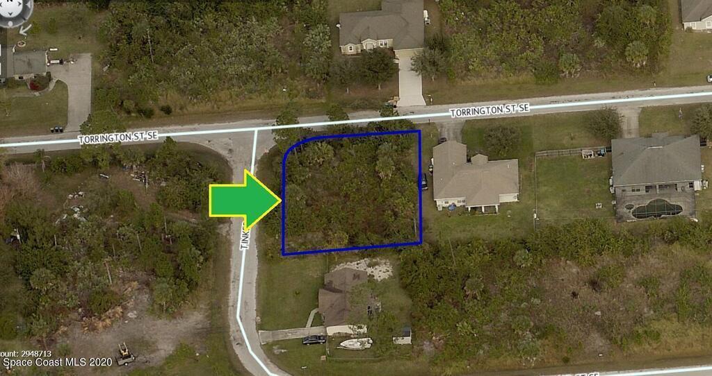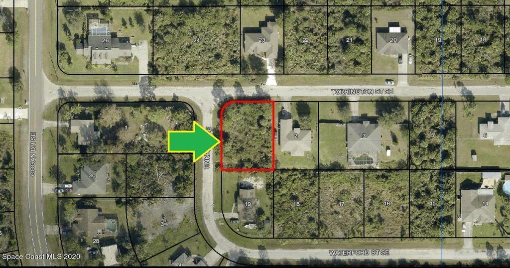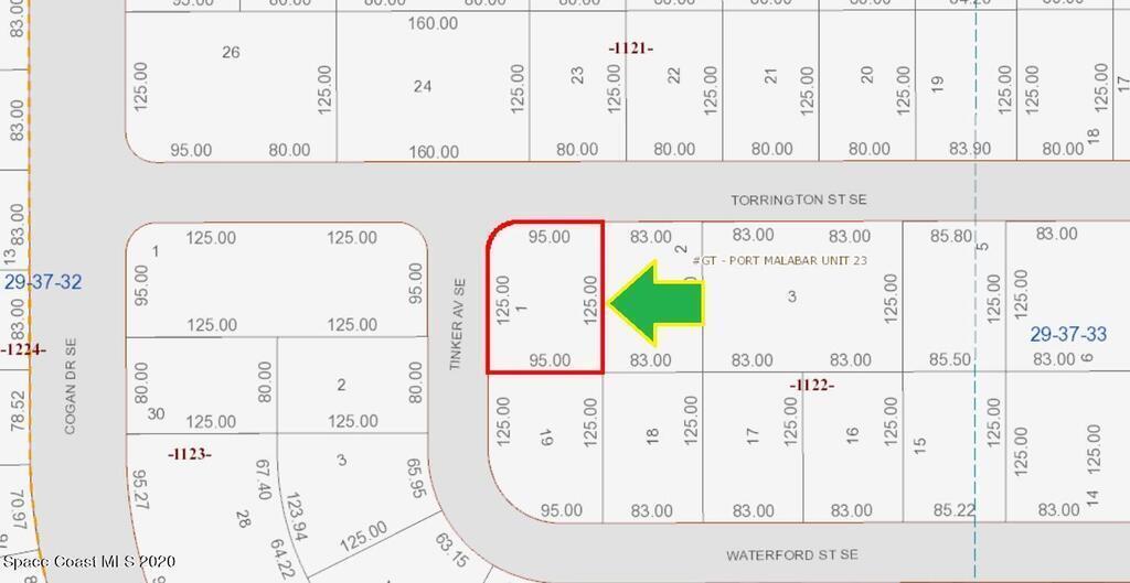 0.27 acre buildable residential Corner lot available in Port Malabar Unit 23 of Palm Bay. Located in the southeast section, this lot is just 2.4 miles - 5 minutes to Sunrise Elementary School, 3.5 miles - 7 minutes to the Publix Supermarket, 13.9 miles - 29 minutes to Melbourne Airport, and 15.8 miles - 33 minutes to the beaches of Indialantic. From exit #166 of I-95 go west on St. Johns Heritage Parkway for 1.7 miles, right on Babcock Street for 1.3 miles, left on Cogan Drive for .7 miles, right on Topsey Avenue for .1 mile, and left on Torrington Street. The lot will be on your left on the southeast corner with Tinker Avenue.