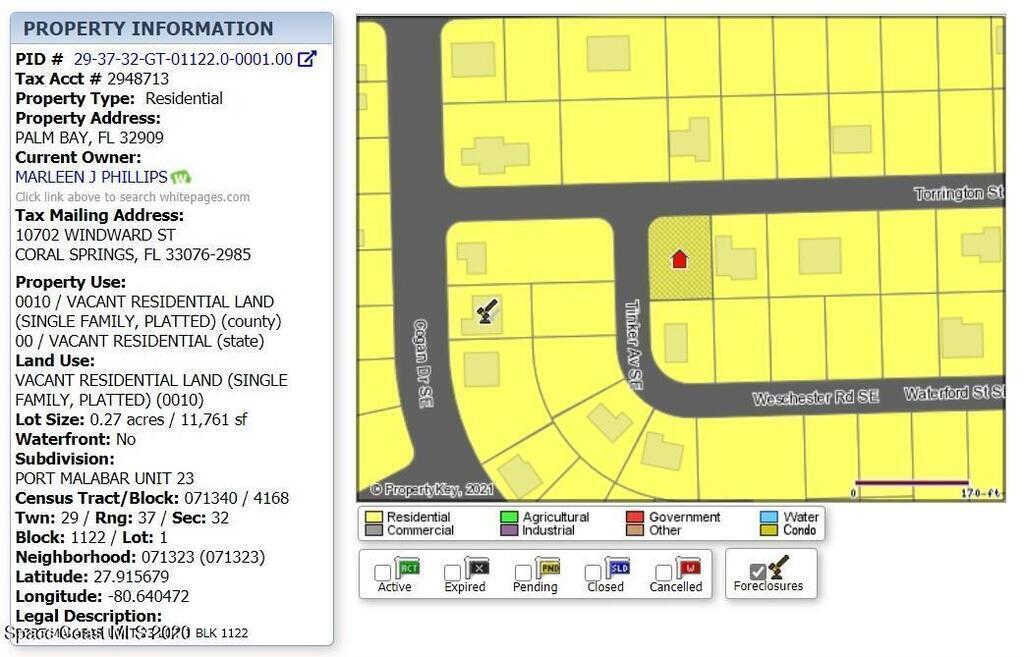 Property Listing Details for 1132 Corner Lot On Torrington Street, Palm Bay, FL 32909
