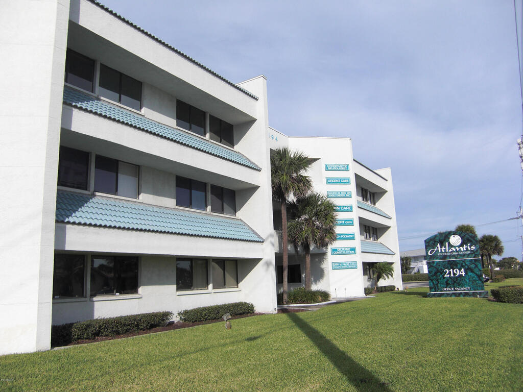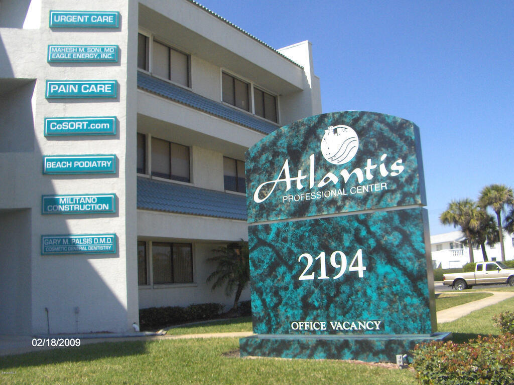 Well established, well maintained Atlantis Professional Center Class A office condo, available now! Ideally located on A1A In Indian Harbour Beach, across from Millennium Oceanfront Park, just North of Eau Gallie Causeway (518) and midway between Melbourne Causeway (192) and Pineda Causeway (404). CBS construction (even roof is concrete slab) with tropical atrium and glass elevator. Two private offices, 10'X11' front office and 10'8''X9' interior office, shared reception area, kitchen, & private bath. Recently renovated. Owner pays CAM, which includes water/sewer, common electric, lawn maintenance, & exterior building insurance & maintenance & exterior pest control. Available now!