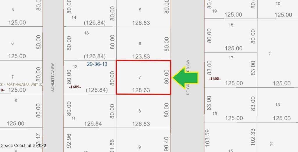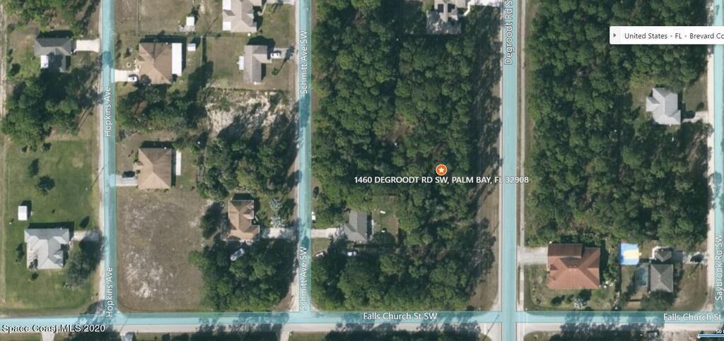 One of 2 side-by-side adjacent lots available in Port Malabar Unit 32 of Palm Bay (the other is 1450 DeGroodt). Located in the southwest section, this 0.23 acre buildable residential lot has City Water available, and is just .9 miles - 2 minutes to Bayside High School, 2.1 miles - 5 minutes to the Publix Supermarket, 12.6 miles - 25 minutes to Melbourne Airport, and 15.2 miles - 32 minutes to the beaches of Indialantic. From exit #176 of I-95 go west on Palm Bay Road NE for .7 miles, left on Minton Road for 3.3 miles, right on Jupiter Boulevard for .1 mile, and left on DeGroodt Road. The lot will be on your right in 1.8 miles.