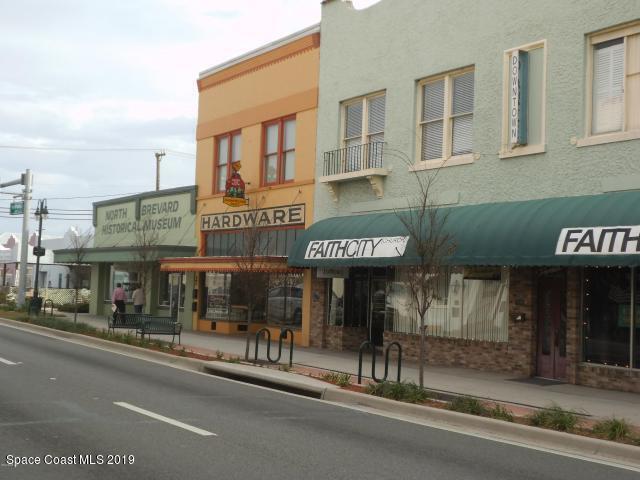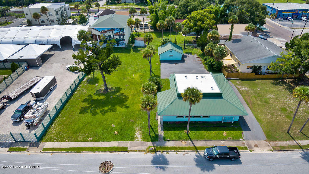 Historic downtown Titusville location of almost 1/2 acre! Zoned office but location would allow for re-zoning to retail, restaurant or other use for downtown district. Imagine the possibilities being just a few feet away from cycle trail, Titusville Playhouse & local owned retail businesses and medical services. Building features exposed wood ceilings, updated windows, central HVAC, metal roof & crawl space. Previously designed as dental office with attached work/live apartment. Kitchen & full bathroom remain in place. 2 restrooms on office side plus lobby. City grants of $50k interior & $40k exterior may still be available. Located in HubZone! Detached 480sf garage. Some paved parking area & 1/4 ac of lawn in additional lot. 2-3 blocks to Indian River & 7 min drive to Playalinda Beach.