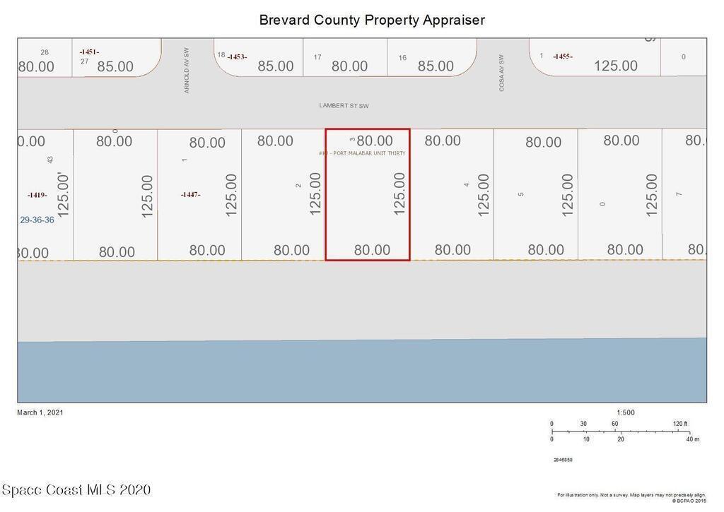 Great lot located on drainage Canal for extra privacy. Lot is located in Palm Bay Suburban Estate Residential Zoning. Lot has 80 feet of Road and canal frontage. It is 125 Feet Deep. Priced well for lots in this area. Should sell quick.