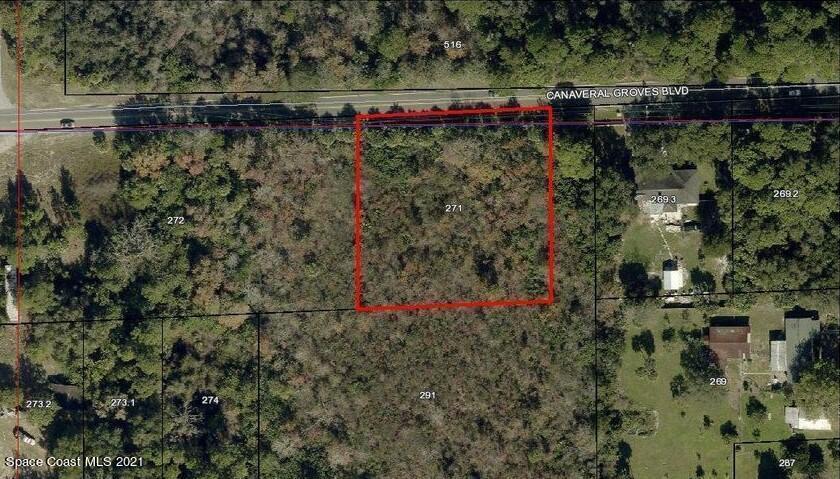 Single Family zoned parcel. Plenty of room for all of our toys on this .95 acre lot. Frontage on Canaveral Groves Blvd close to US1. No survey or environmental study. Lot in natural state, has not been cleared.