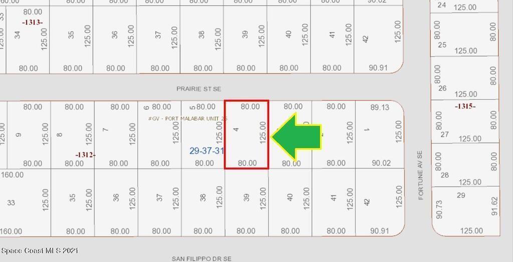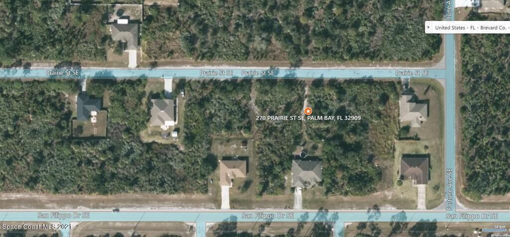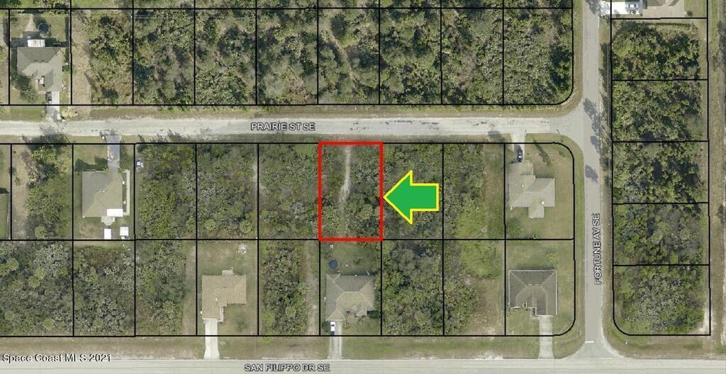 0.23 acre buildable residential lot available in Port Malabar Unit 25 of Palm Bay. Located in the southeast section, this lot is just 2.4 miles - 6 minutes to Westside Elementary School, 4 miles - 9 minutes to the Publix Supermarket, 14.5 miles - 31 minutes to Melbourne Airport, and 19.1 miles - 33 minutes to the beaches of Indialantic. From exit #173 of I-95 go west on Malabar Road NE for .2 miles, left on San Filippo Drive SE for 6.9 miles, right on Fortune Avenue for .1 mile, and left on Prairie Street. The lot will be on your left.